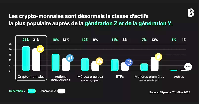 Une enquête menée par Bitpanda en 2024 révèle un constat frappant : les Millennials préfèrent investir dans les cryptomonnaies plutôt que dans les actions traditionnelles. En Europe, cette tendance est particulièrement marquée, et elle souligne une véritable transition générationnelle.